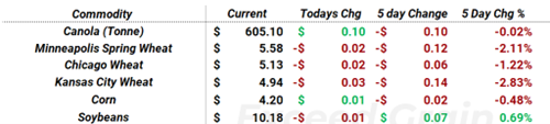 Futures sit at $5.58 per bushel on the U.S. based contract. New contract lows were made last week at $5.55 per bushel Oct. 2, 2025.