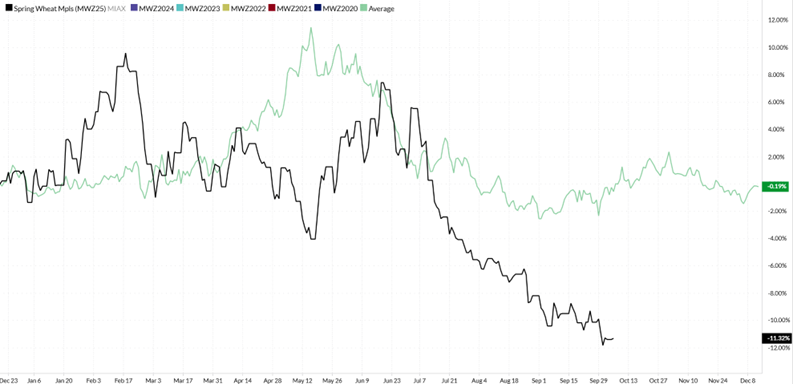 Seasonal Charts – Minneapolis Spring Wheat – Average (Green Line) Current Year (Black Line)