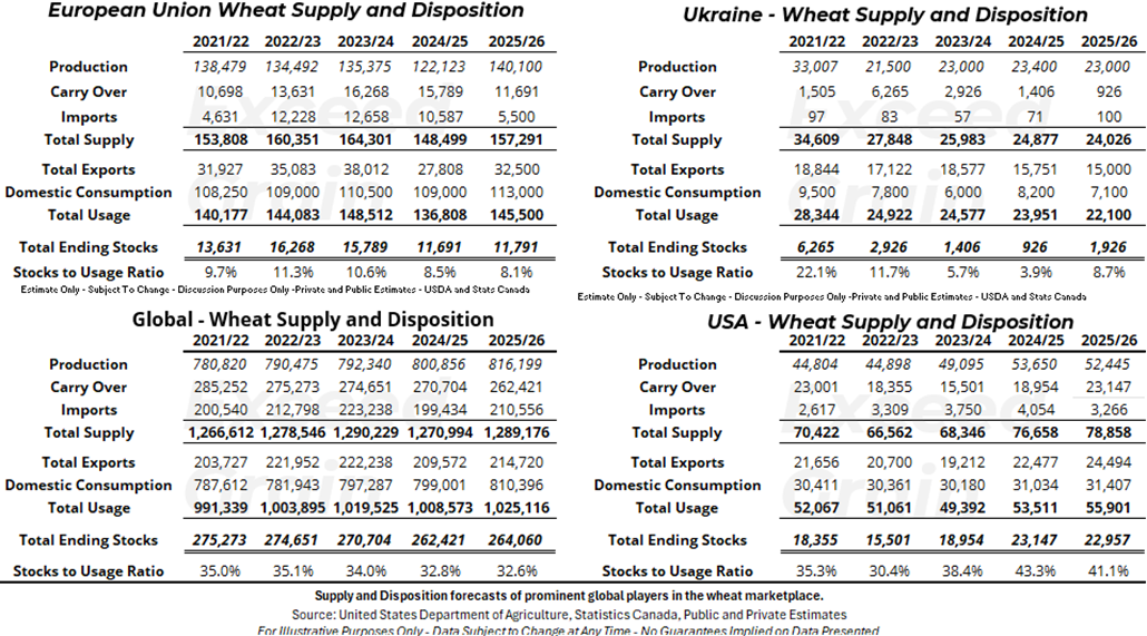 Turkey MARS has reported that due to early drought conditions there are wheat production cuts expected for the 2025/26 wheat production year. Expectations of 19.5 mmt wheat production would be a 1.3 mmt haircut from the year prior. Of note, Turkey’s 2025/26 durum crop is estimated at 3.7 mmt vs 4.4 mmt last year.