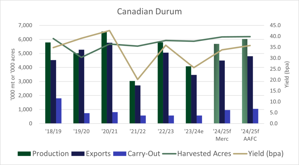 The durum market will be better supplied this year and there will be strong competition in the export market.