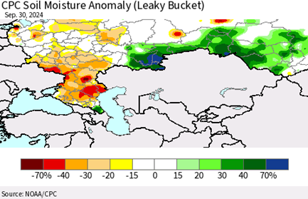 Russian wheat prices rose to a three-month high last week as dryness in Russia’s main winter wheat growing region continues to cause concern. September was the seventh consecutive month with below average rain fall.